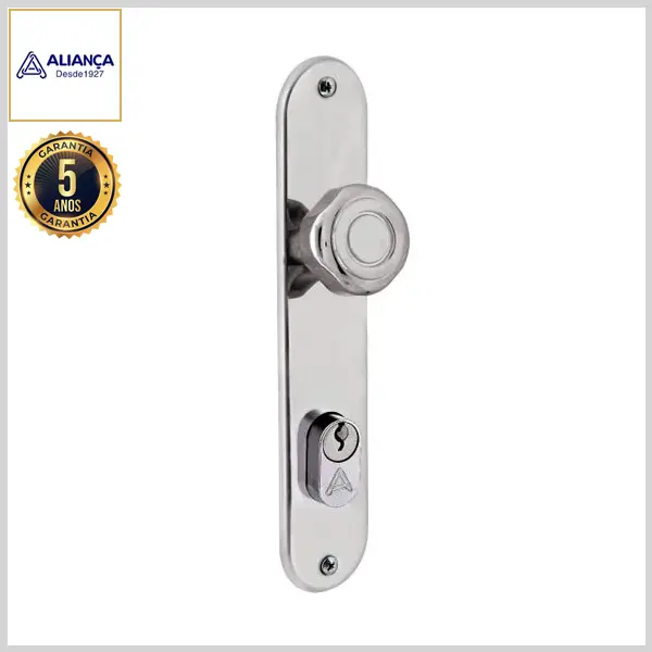 Fechadura Externa Premium 2600/60 Broca40mm Chave Simples c/Maçaneta c/Espelho Inox - Inox Polido - Aliança