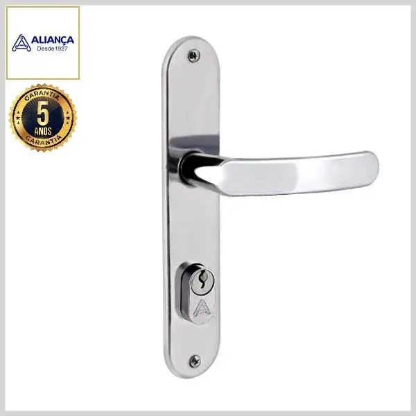 Fechadura Externa Premium 2600/71 Broca40mm Chave Simples c/Maçaneta c/Espelho Inox - Inox Polido - Aliança