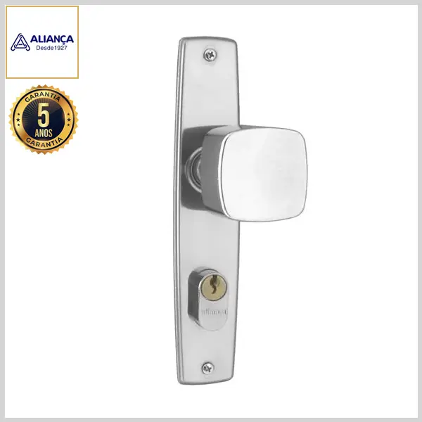 Fechadura Externa Premium 4600/28 Broca40mm Chave Simples c/Maçaneta c/Espelho Inox - Inox Polido - Aliança