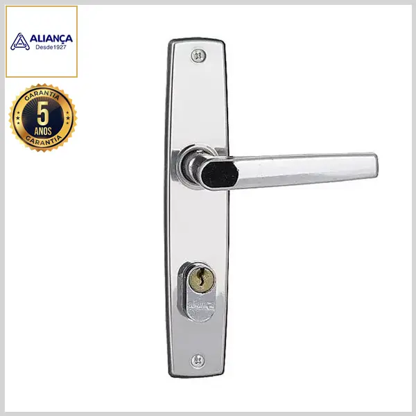 Fechadura Externa Premium 4600/40 Broca40mm Chave Simples c/Maçaneta c/Espelho Inox - Inox Polido - Aliança