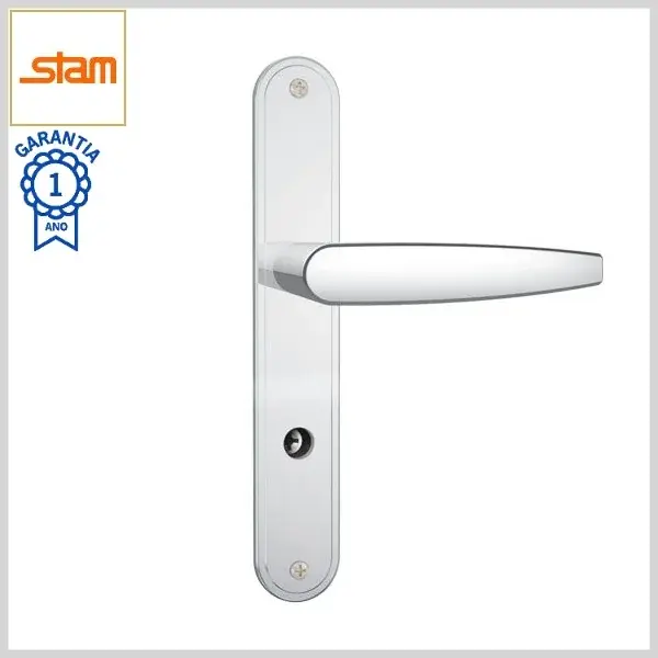 Fechadura Externa Standard 500/33 Broca26.5mm Chave Tetra c/Maçaneta c/Espelho Inox - Cromado - Stam