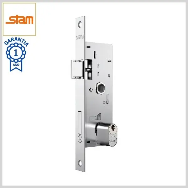 Fechadura Externa Standard 501/03 Broca26.5mm Chave Simples c/Maçaneta c/Espelho Inox - Cromado - Stam