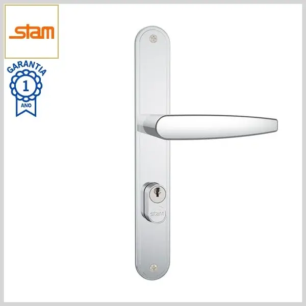 Fechadura Externa Standard 501/33 Broca26.5mm Chave Simples c/Maçaneta c/Espelho Inox - Cromado - Stam