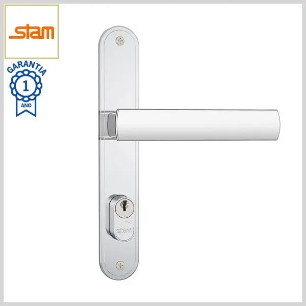 > Fechadura Externa Standard 504/35 Broca26.5mm Chave Simples c/Maçaneta c/Espelho Inox