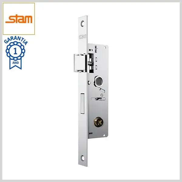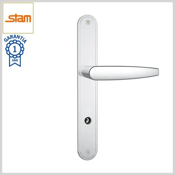 Fechadura Externa Standard 600/33 Broca20mm Chave Tetra c/Maçaneta c/Espelho Inox - Cromado - Stam