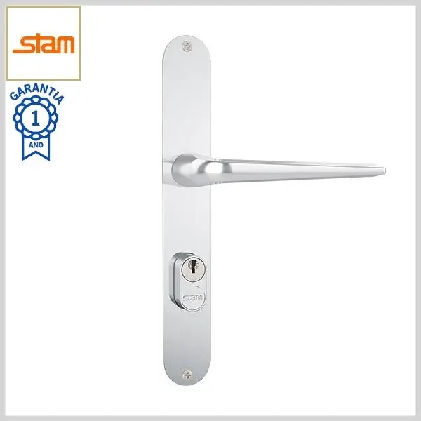 Fechadura Externa Standard 603/01 Broca20mm Chave Simples c/Maçaneta c/Espelho Inox - Cromado - Stam