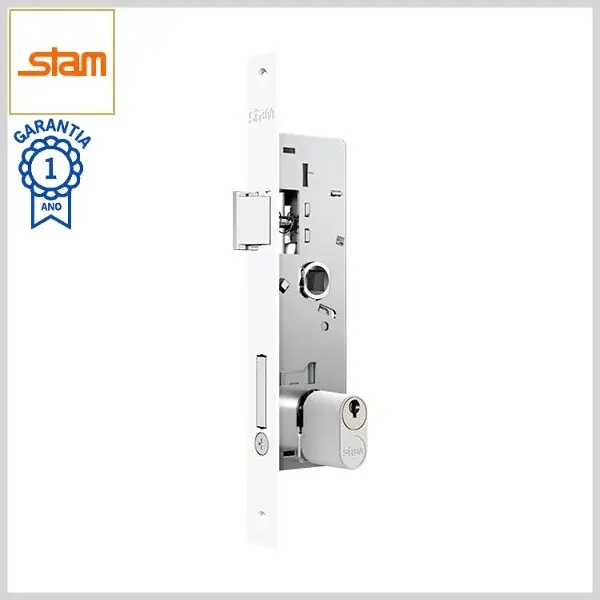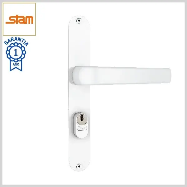 Fechadura Externa Standard 603/17 Broca20mm Chave Simples c/Maçaneta c/Espelho Inox - Branco - Stam