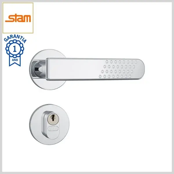 Fechadura Externa Standard 803/21 Broca40mm Chave Simples c/Maçaneta c/Roseta Inox Redonda - Cromado - Stam