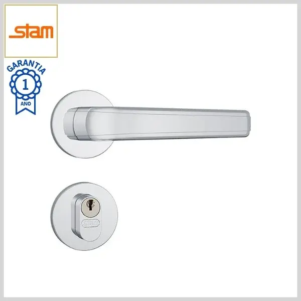 Fechadura Externa Standard 803/23 Broca40mm Chave Simples c/Maçaneta c/Roseta Inox Redonda - Cromado - Stam