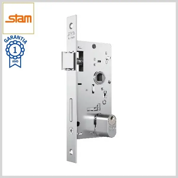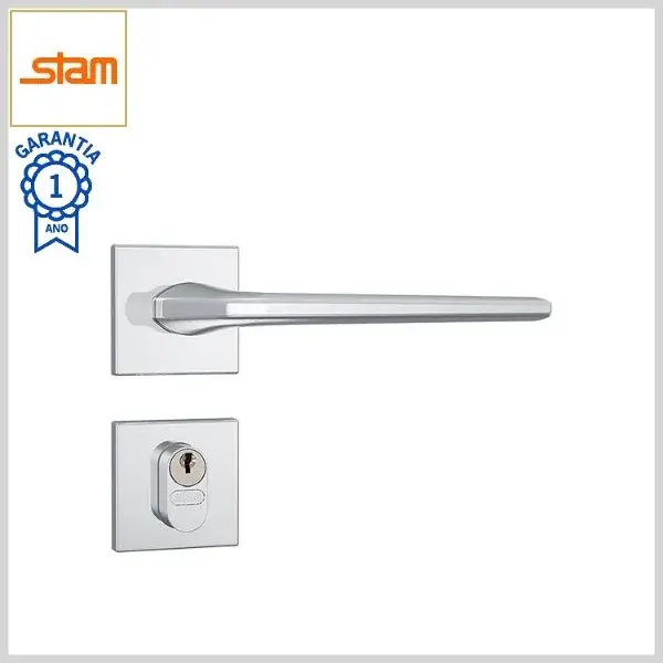 Fechadura Externa Standard 803/27 Broca40mm Chave Simples c/Maçaneta c/Roseta Inox Quadrada1 - Cromado - Stam