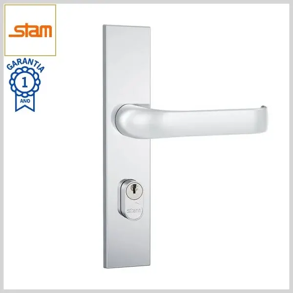 Fechadura Externa Standard 805/37 Broca40mm Chave Simples c/Maçaneta c/Espelho Inox - Cromado - Stam