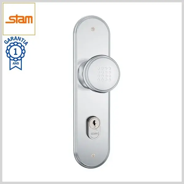 Fechadura Externa Standard 1601/14 Broca55mm Chave Simples c/Maçaneta c/Espelho Inox - Cromado - Stam
