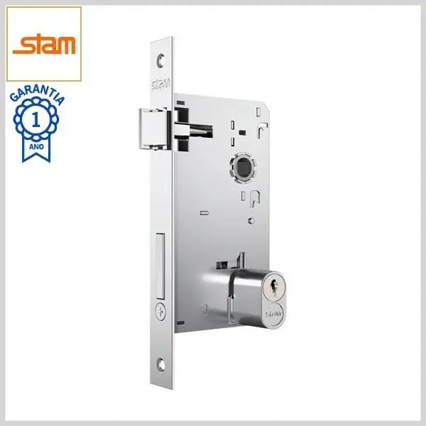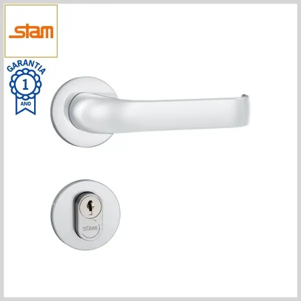 Fechadura Externa Standard 1601/37 Broca55mm Chave Simples c/Maçaneta c/Roseta Inox Redonda - Cromado - Stam