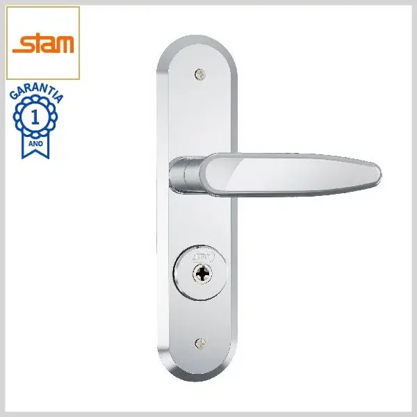 Fechadura Externa Standard 1800/19 Broca40mm Chave Tetra c/Maçaneta c/Espelho Inox - Cromado - Stam
