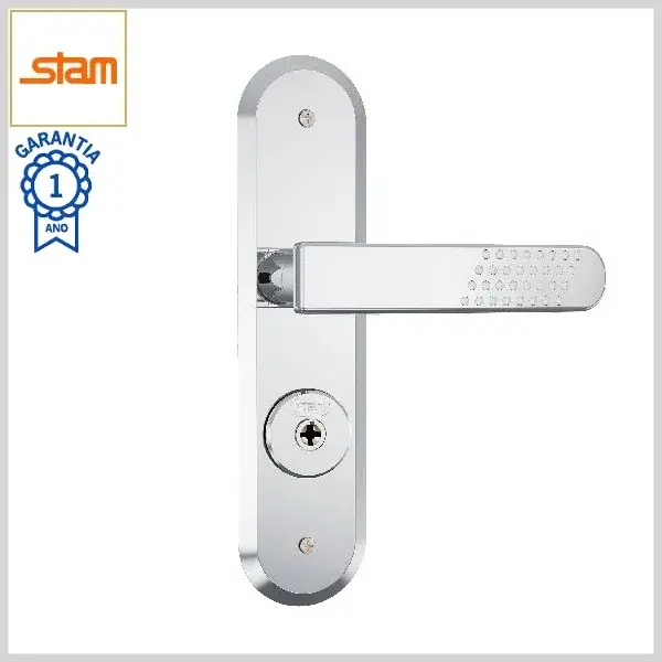 Fechadura Externa Standard 1800/21 Broca40mm Chave Tetra c/Maçaneta c/Espelho Inox - Cromado - Stam