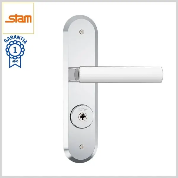 Fechadura Externa Standard 1800/35 Broca40mm Chave Tetra c/Maçaneta c/Espelho Inox - Cromado - Stam
