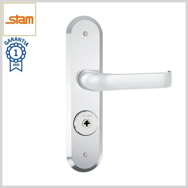 Fechadura Externa Standard 1800/37 Broca40mm Chave Tetra c/Maçaneta c/Espelho Inox - Cromado - Stam