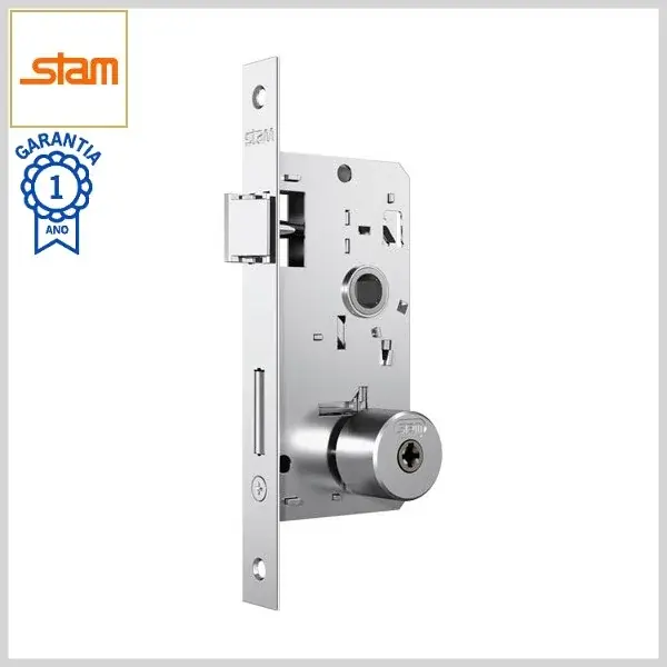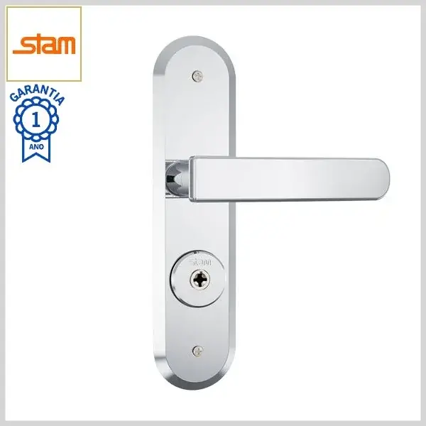 Fechadura Externa Standard 1800/41 Broca40mm Chave Tetra c/Maçaneta c/Espelho Inox - Cromado - Stam