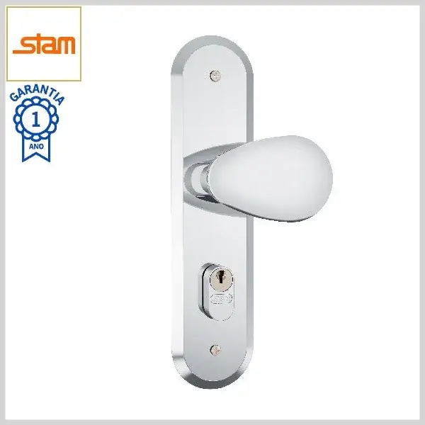 Fechadura Externa Standard 1801/10 Broca40mm Chave Simples c/Maçaneta c/Espelho Inox - Cromado - Stam