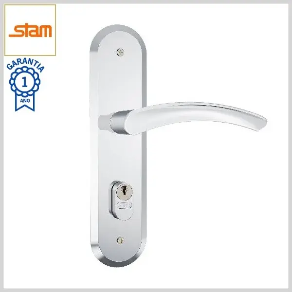 Fechadura Externa Standard 1801/13 Broca40mm Chave Simples c/Maçaneta c/Espelho Inox - Cromado - Stam