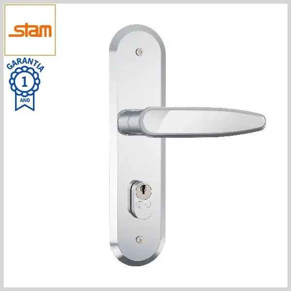 Fechadura Externa Standard 1801/19 Broca40mm Chave Simples c/Maçaneta c/Espelho Inox - Cromado - Stam