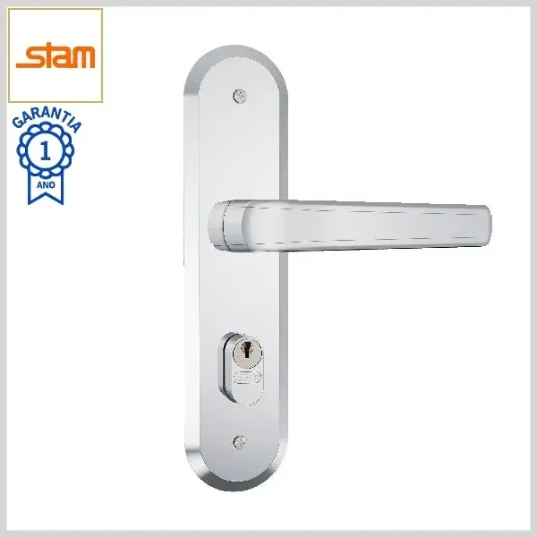 Fechadura Externa Standard 1801/23 Broca40mm Chave Simples c/Maçaneta c/Espelho Inox - Cromado - Stam