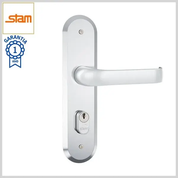 Fechadura Externa Standard 1801/37 Broca40mm Chave Simples c/Maçaneta c/Espelho Inox - Cromado - Stam