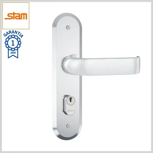 Fechadura Externa Standard 1801/39 Broca40mm Chave Simples c/Maçaneta c/Espelho Inox - Cromado - Stam