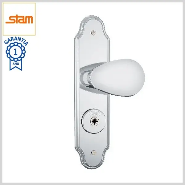 Fechadura Externa Standard 1803/10 Broca40mm Chave Tetra c/Maçaneta c/Espelho Inox - Cromado - Stam