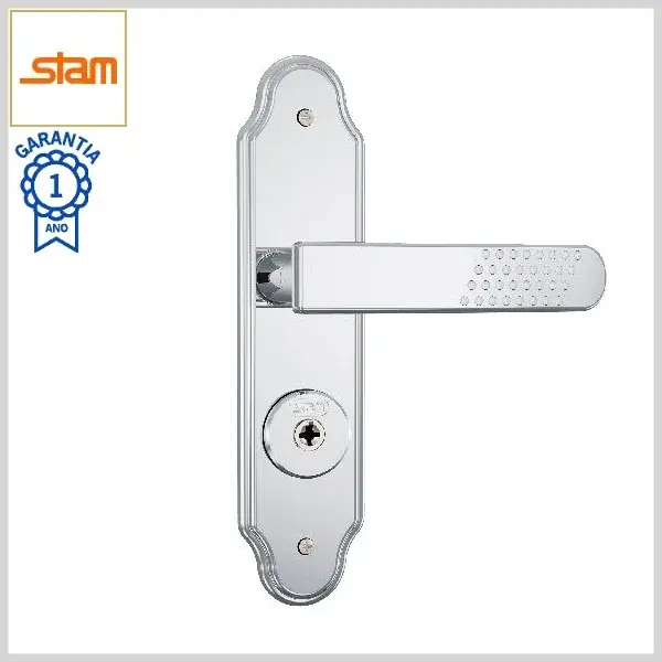 Fechadura Externa Standard 1803/21 Broca40mm Chave Tetra c/Maçaneta c/Espelho Inox - Cromado - Stam