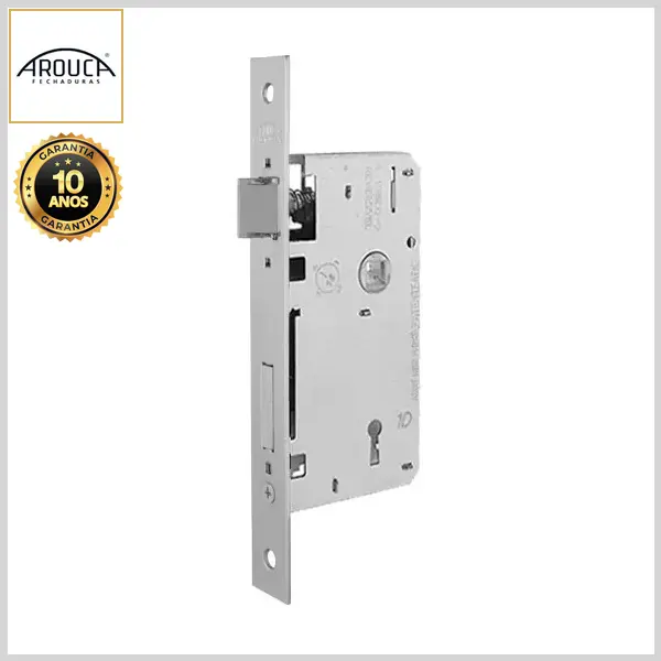 Fechadura Interna Abitare Strada 402526/40 Broca40mm Chave Gorje c/Maçaneta c/Espelho Inox - Cromado - Arouca
