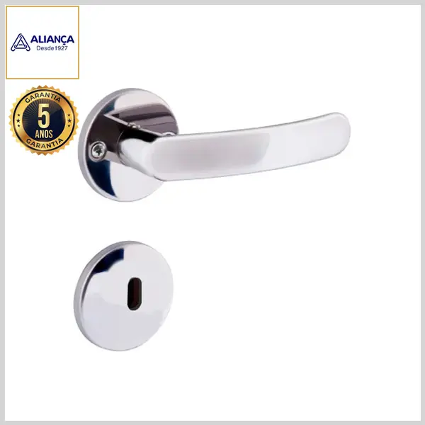 Fechadura Interna Premium 2700/11 Broca40mm Chave Gorje c/Maçaneta c/Roseta Inox Redonda - Inox Polido - Aliança