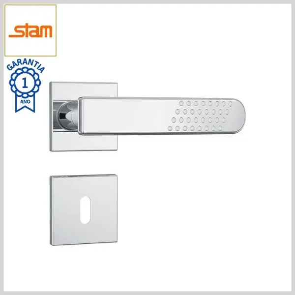 Fechadura Interna Standard 813/21 Broca40mm Chave Gorje c/Maçaneta c/Roseta Inox Quadrada1 - Cromado - Stam