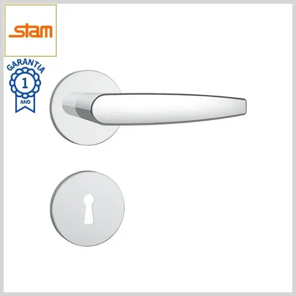 Fechadura Interna Standard 813/33 Broca40mm Chave Gorje c/Maçaneta c/Roseta Inox Redonda - Cromado - Stam