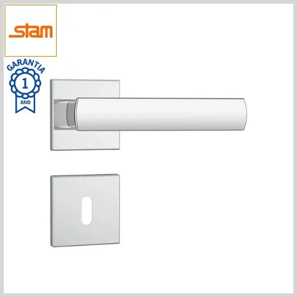 Fechadura Interna Standard 813/35 Broca40mm Chave Gorje c/Maçaneta c/Roseta Inox Quadrada1 - Cromado - Stam