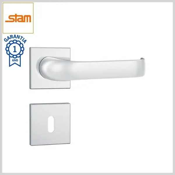Fechadura Interna Standard 813/37 Broca40mm Chave Gorje c/Maçaneta c/Roseta Inox Quadrada1 - Cromado - Stam