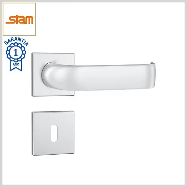 Fechadura Interna Standard 813/39 Broca40mm Chave Gorje c/Maçaneta c/Roseta Inox Quadrada1 - Cromado - Stam
