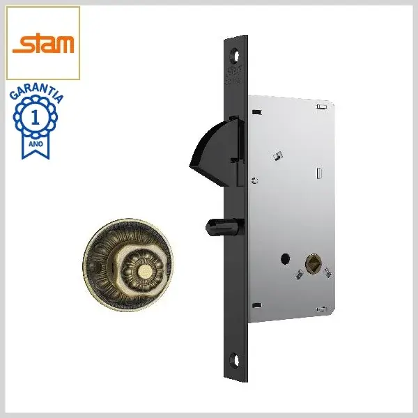 Fechadura Porta Correr Banheiro Colonial 950 Broca45mm Tranqueta s/Maçaneta c/Roseta Inox Redonda - Colonial e-Coat - Stam