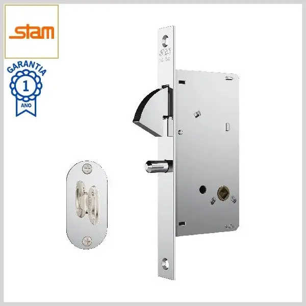 Fechadura Porta Correr Banheiro Standard 950 Broca45mm Tranqueta s/Maçaneta c/Espelho Inox - Cromado - Stam