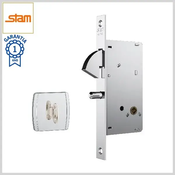 Fechadura Porta Correr Banheiro Standard 950 Broca45mm Tranqueta s/Maçaneta c/Roseta Inox Quadrada - Cromado - Stam