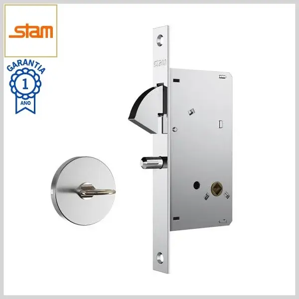 Fechadura Porta Correr Banheiro Standard 950 Broca45mm Tranqueta s/Maçaneta c/Roseta Inox Redonda - Cromado - Stam