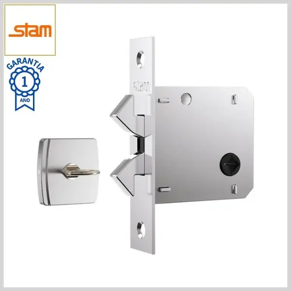 Fechadura Porta Correr Banheiro Standard 1006s Broca45mm Tranqueta s/Maçaneta c/Roseta Inox Quadrada - Cromado - Stam