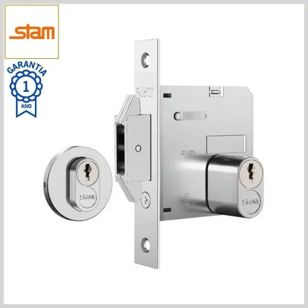 Fechadura Porta Correr Externa Classic 1006 Broca45mm Chave Simples s/Maçaneta c/Roseta Inox Redonda - Cromado - Stam