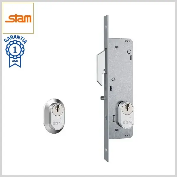 Fechadura Porta Correr Externa Standard 902 Broca18mm Chave Simples s/Maçaneta c/Espelho Inox Pressão - Inox 304 - Stam