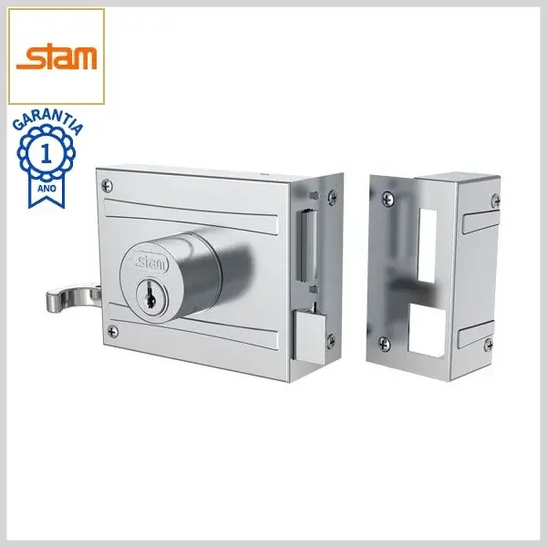 Fechadura Sobrepor Externa p/Portão 701/100 Trinco Reversível Chave Simples c/Corpo+Castanha Aço - Inox 304 - Stam