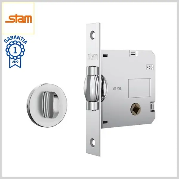 Fechadura Trinco Rolete Banheiro Classic 1025 Broca45mm Tranqueta s/Maçaneta c/Roseta Inox Redonda - Cromado - Stam
