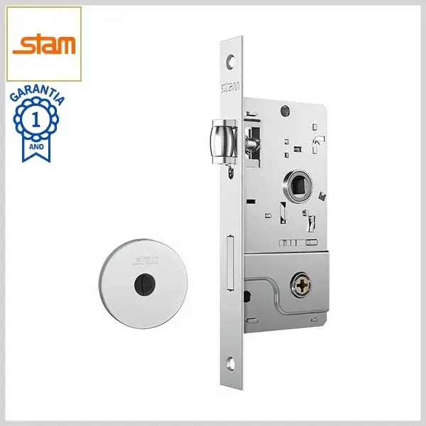 Fechadura Trinco Rolete Externa Standard 800 Broca40mm Chave Tetra s/Maçaneta c/Roseta Inox Redonda - Cromado - Stam