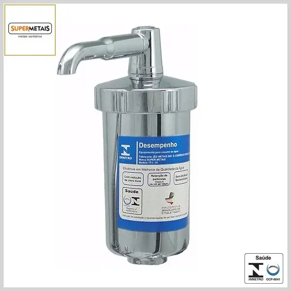 Produto composto por um kit contendo o copo em Abs cromado e elemento filtrante incluso, sendo indicado para uso em torneiras ou registros que possuam saídas para filtros de água. O kit é fornecido com o copo e o elemento filtrante de carvão ativado, disponível para compra em separado, quando da necessidade de reposição.