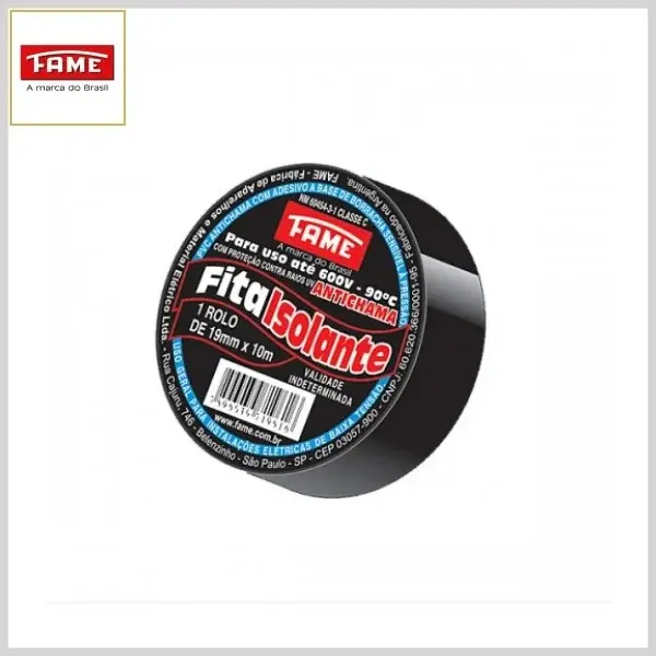 Fita Isolante PVC Antichama 19mm x 10m (600V) - Uso Geral, Espessura: 0,13mm - Fame