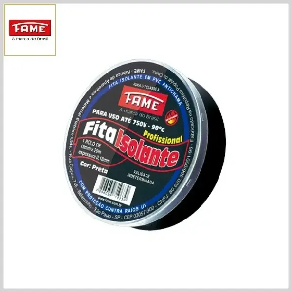 Fita Isolante PVC Antichama 19mm x 20m (750V) - Uso Profissional, Espessura: 0,18mm - Fame